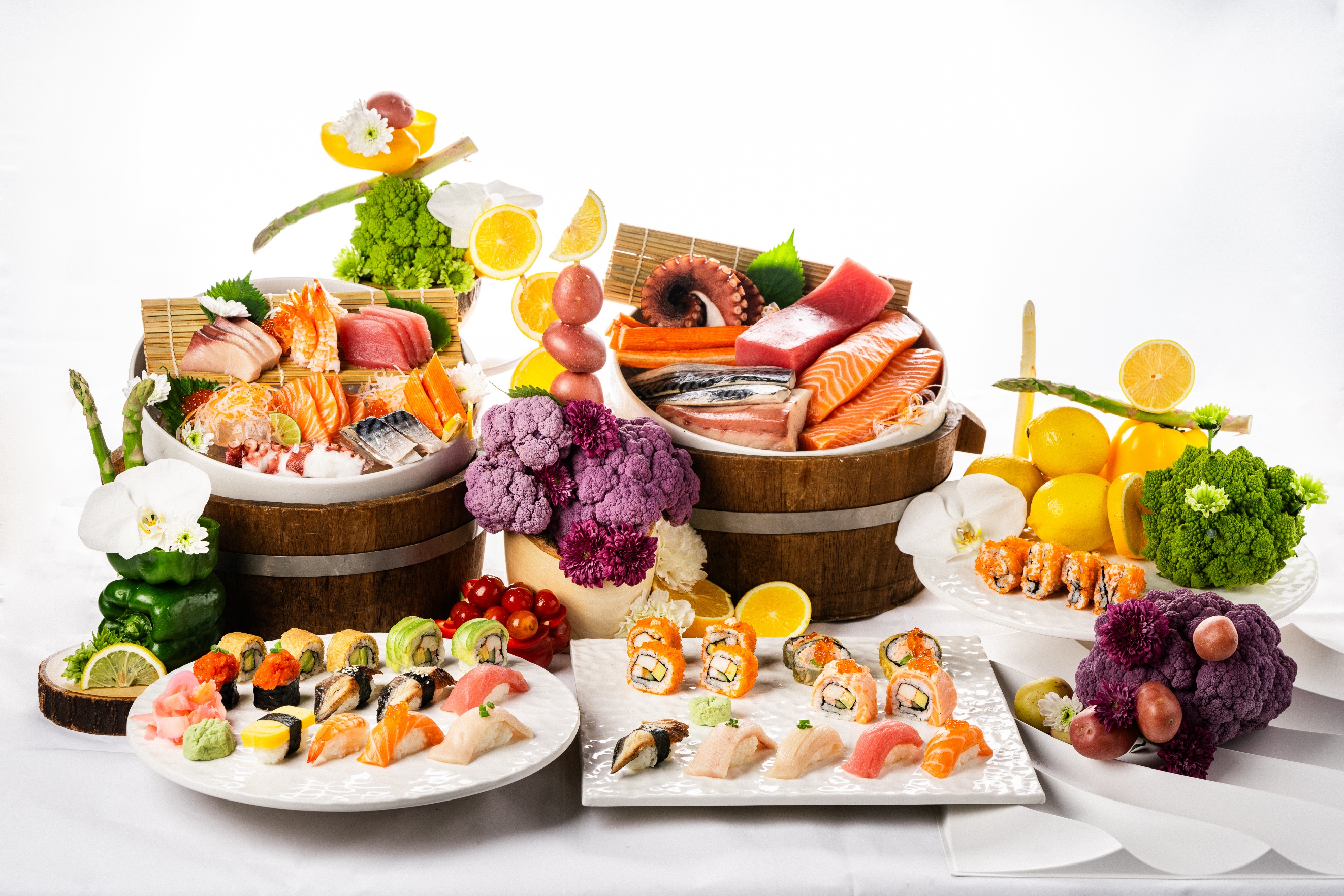 เพลิดเพลินไปกับกองทัพซีฟู้ดบุฟเฟต์สุดอลังการ พร้อมอาหารไทยและนานาชาติอันหลากหลาย อาทิ ซีฟู้ดออนไอซ์, ซูชิและซาชิมิ, เมนูกริลล์พรีเมียม และอื่นๆ