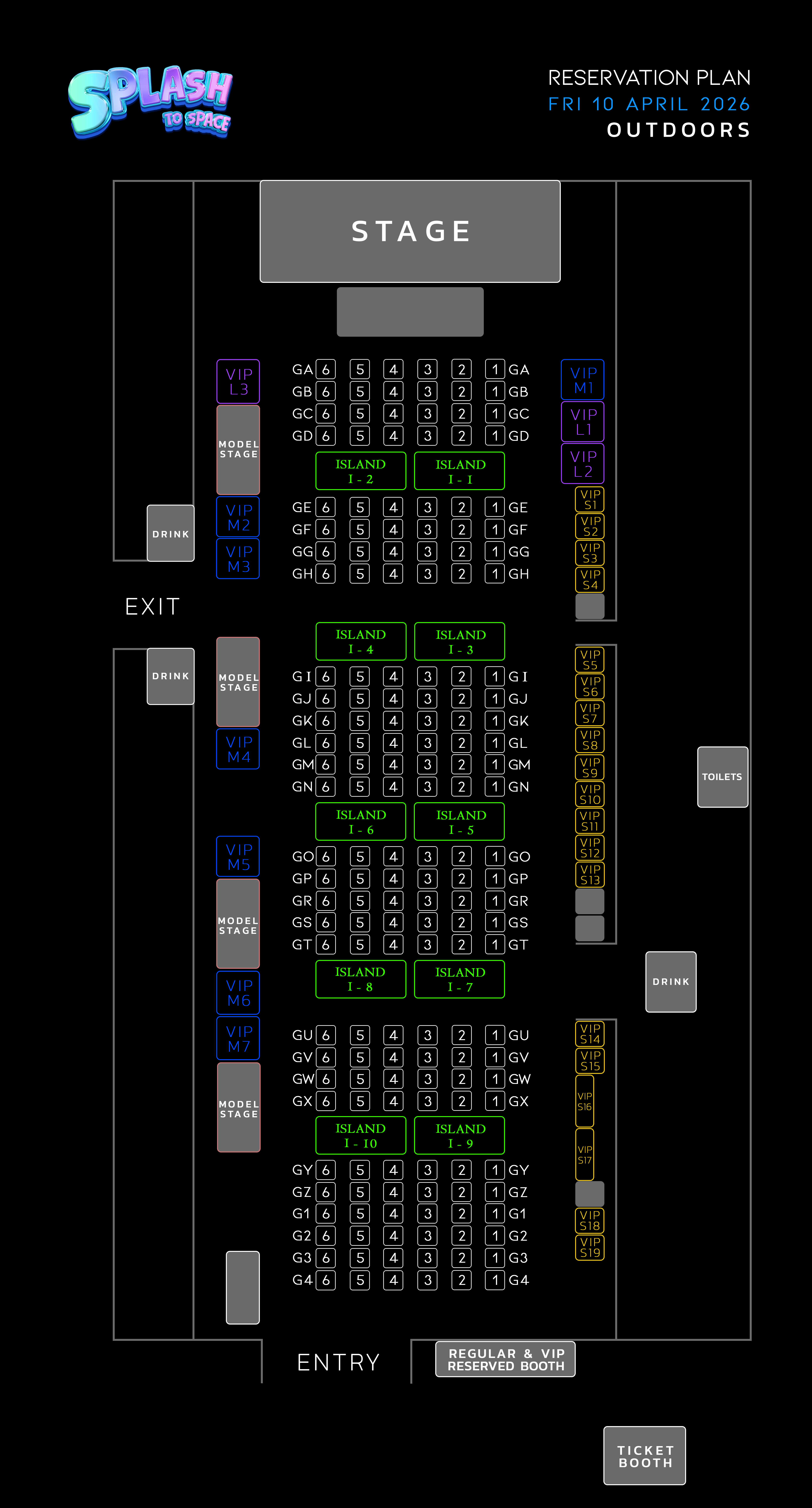Please show your reservation QR code at the respective counters to redeem your table & wristbands.