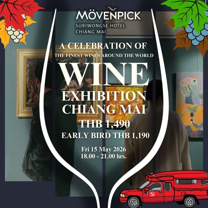 Event Date: Friday, May 15, 2026 at 6:00 PM Extraordinary Wine Experience Mövenpick Suriwongse Chiangmai’s 4th Wine Exhibition WINE: Experience an extraordinary event at the Wine Exhibition, designed to offer a one-of-a-kind experience for wine enthusiasts and connoisseurs. This special event is tailored for those who love wine, food, and art.…