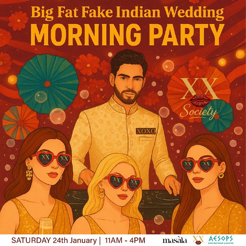 On Saturday, 24 January 2026, XOXO Society transforms Aesops Rooftop into a full South Asian wedding fantasy: colors, dhols, henna, champagne, dance floors, and pure main-character energy.